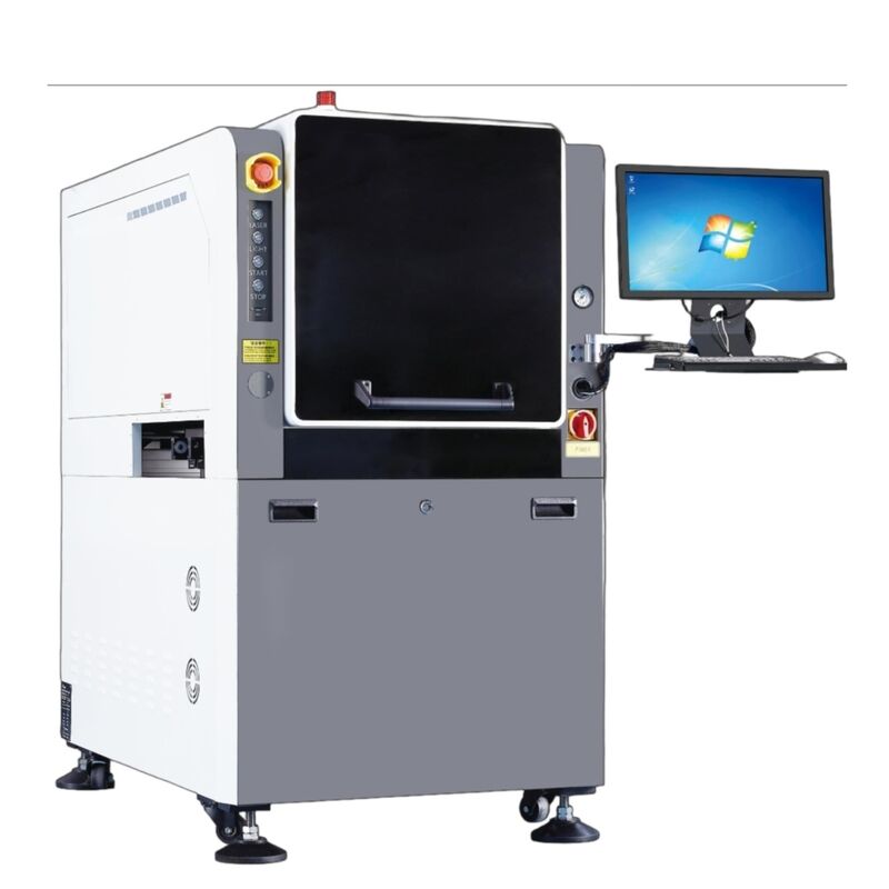 Sistem penandaan laser presisi tinggi yang dirancang untuk lini produksi SMT, menampilkan koreksi visi koaksial untuk aplikasi penandaan PCB yang akurat.